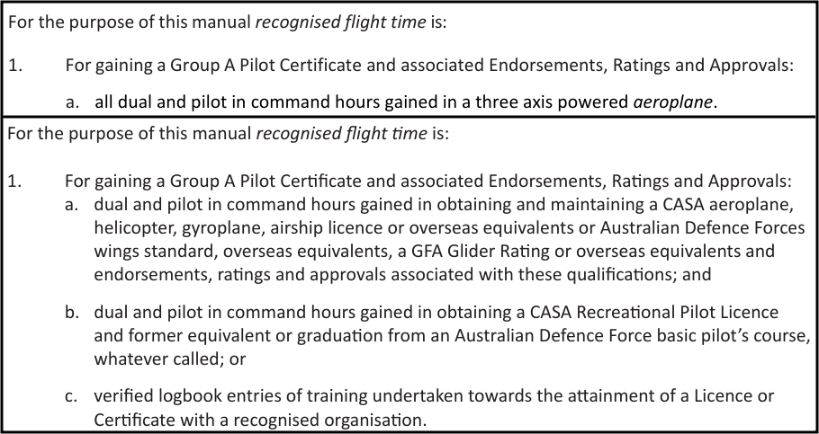 SECTION 2.13 RECOGNISED FLIGHT TIME AND/OR QUALIFICATONS FROM ORGANISATIONS OTHER THAN RAAus